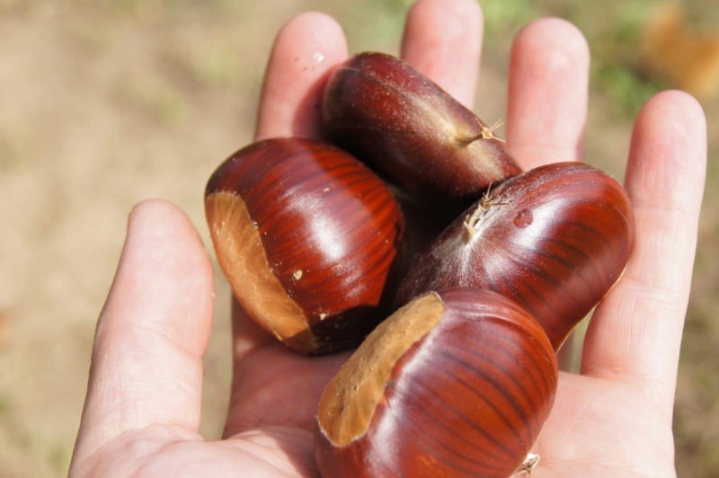Die Ernte erfolgt nahezu täglich, um die frisch gefallenen Früchte so schnell wie möglich vor Verderb zu schützen. Dabei wird der Großteil unserer Maroni aufwendigst per Hand vom Boden aufgelesen. Im Anschluss werden die Kastanien gereinigt und ins Kühllager gebracht.