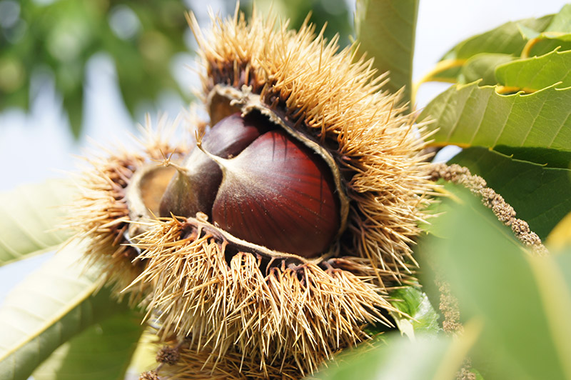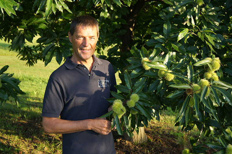 Auf einem damals brachliegenden Feld wurde die Idee einer Edelkastanienplantage geboren und umgesetzt. Nach anfänglichen Schwierigkeiten wurde uns rasch klar, dass wir neben dem Schilcher auch mit einem weiteren heimischen weststeirischen Produkt, nämlich der Edelkastanie, arbeiten möchten. Mittlerweile wachsen und gedeihen bei uns ca. 400 Kastanienbäume in 4 Plantagen, darunter über 15 verschiedene Sorten, die neben den heimischen auch aus Italien, Frankreich, Holland, Florida und Japan stammen.
